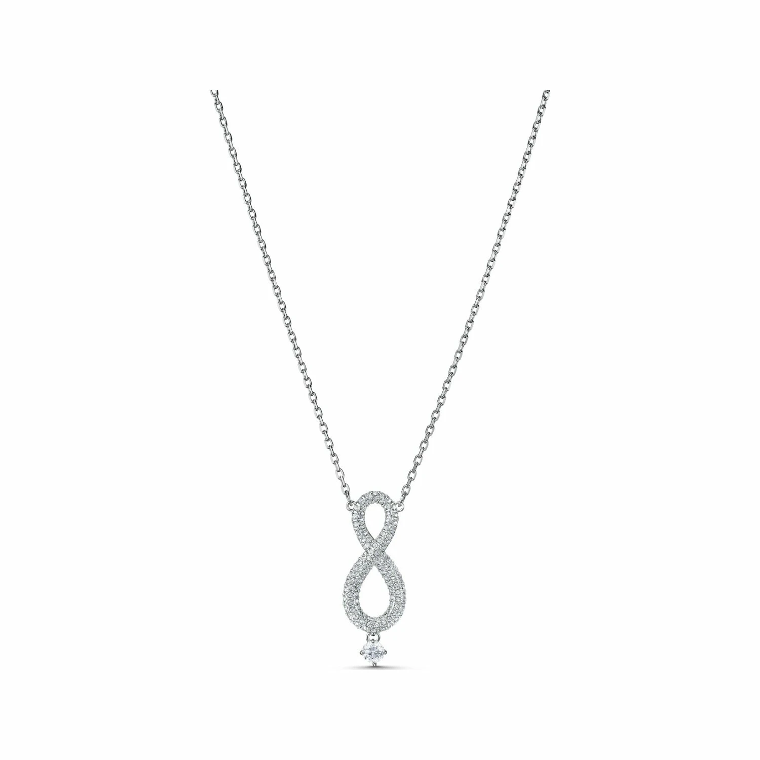 Il émane de ce collier Swarovski en métal rhodié une élégance intemporelle avec une pointe de modernité. Il présente le symbole de l’infini orné de détails étincelants et d’une unique pierre dansante. Un cadeau charmant qui symbolise parfaitement le lien éternel qui vous unit à une personne spéciale.